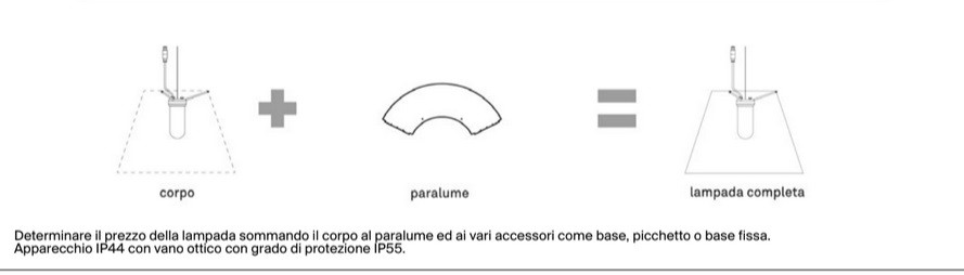 NOTA: SOLO CORPO LAMPADA, IL DIFFUSORE è INVECE VENDUTO SEPARATAMENTE (vedi DIFFUSORE D13E/2 Ø 50 OPPURE DIFFUSORE D13G/1 Ø 50 PER GRANDE COSTANZA OPEN AIR).