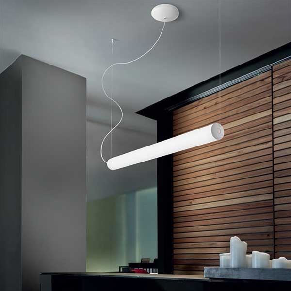 Luce tubolare, verticale o orizzontale, in diverse lunghezze. Componibile in cascate verticali o in intricate foreste a soffitto, essenziale scultura luminosa.