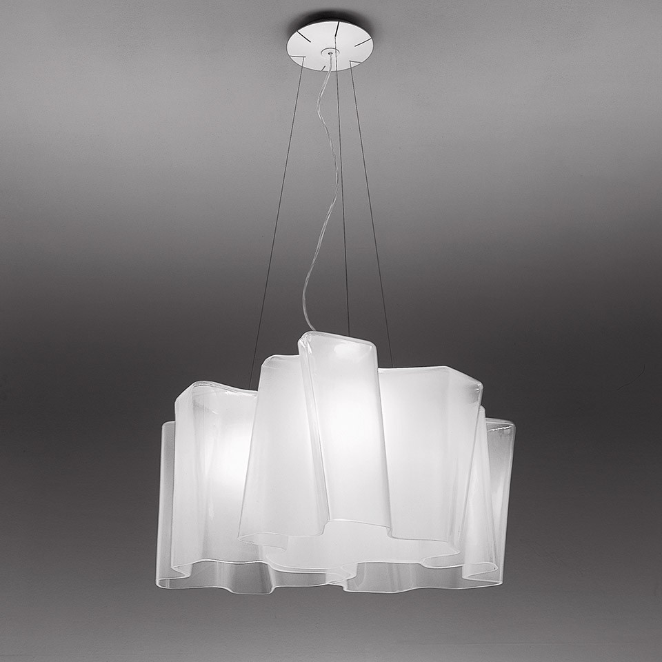Il diffusore in vetro soffiato artigianale definisce un volume morbido ed irregolare, mosso da curve che generano un gioco di positivi e negativi così da rendere modulare la geometria e permettere la creazione di composizioni standard o libere di crescere nello spazio in configurazioni custom più ampie.