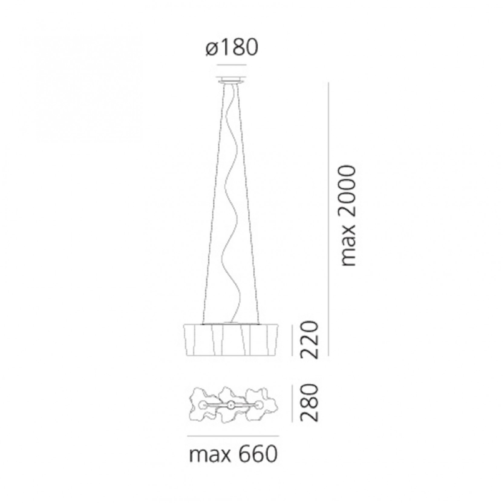 - Altezza cavi: max 200 cm.