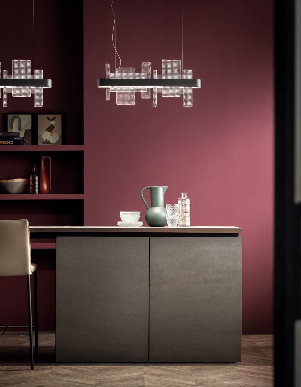 Ribbon parla di leggerezza contemporanea delle linee, purezza dei materiali e minimalismo dei colori. Questo è Ribbon, dove il metallo cinge il vetro come chiffon bianco avvolto da un nastro nero dalle abili mani di una sarta.