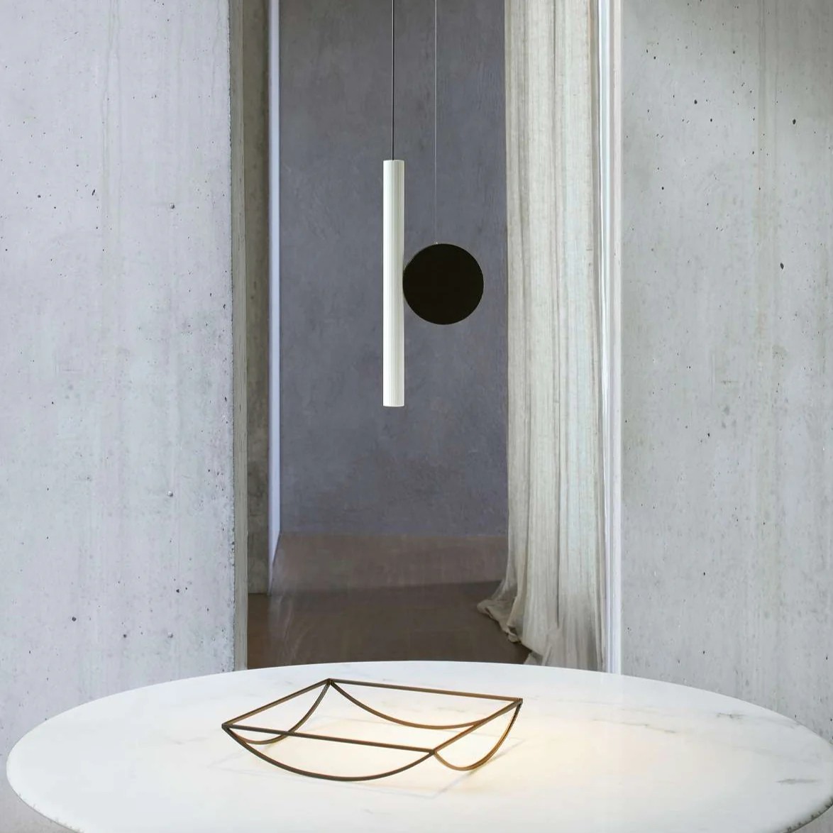 Doi è una famiglia di lampade decorative da interni che assume diverse possibili configurazioni nelle sospensioni, costituita solo da disco e cilindro oppure con l’aggiunta dell’accessorio “pendolo”. A seconda dell’interazione fra gli elementi cardine del progetto – ovvero disco e cilindro diffusore – all’aggancio magnetico o al gioco di contrappesi, si ottengono composizioni differenti e l’orientamento desiderato del fascio luminoso.
