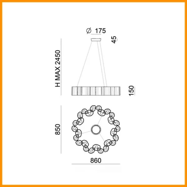 - Diametro base soffitto: 17,5 cm.