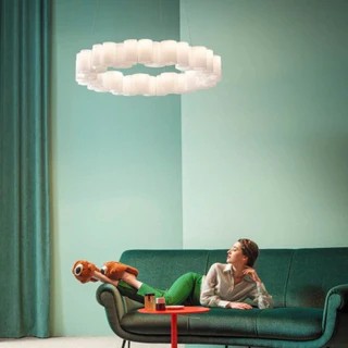 La collezione Honey gioca sulla ripetizione di un elemento modulare, che si moltiplica creando configurazioni lineari o circolari. La luce calda è diffusa sia in modo diretto che indiretto e, schermata da opalini ondulati, dà vita ad affascinanti sfumature.