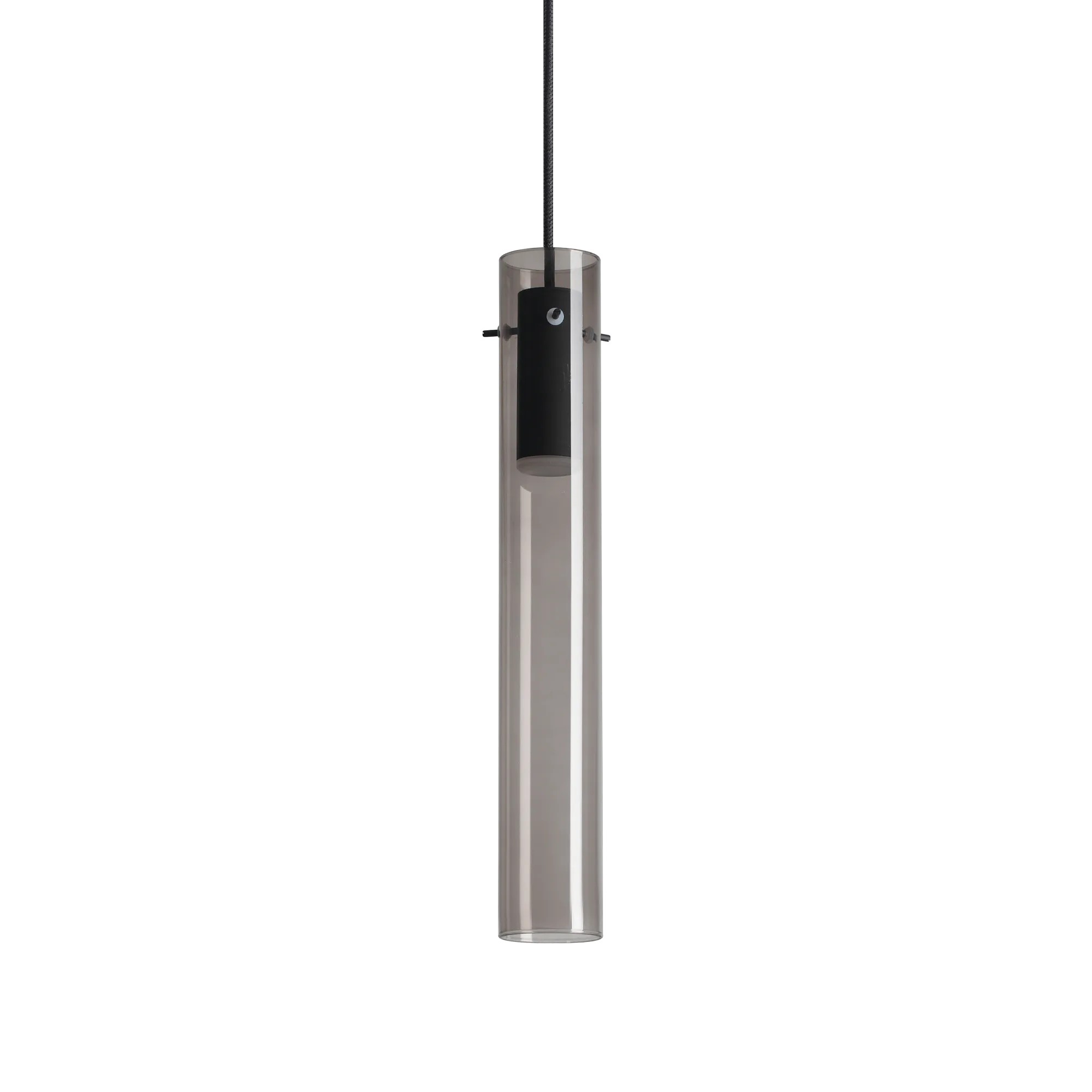 Rosone e montatura in metallo verniciato a polveri. Diffusore in vetro borosilicato. Cavo in pvc nero. Colore montatura: nero.