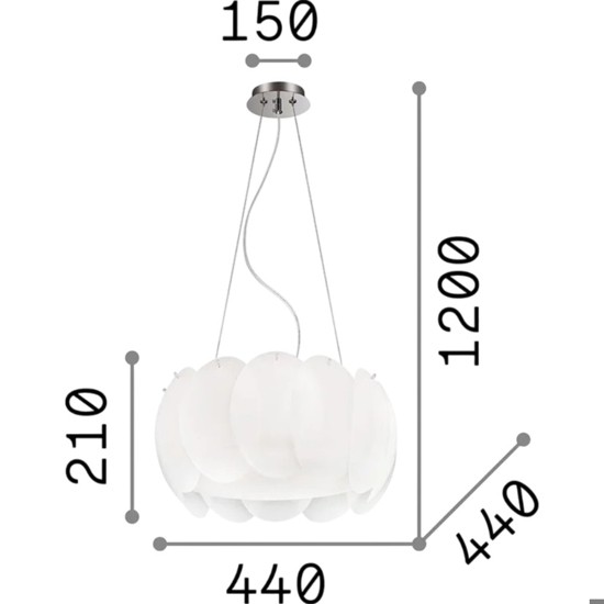- Diametro base soffitto: 15 cm.
