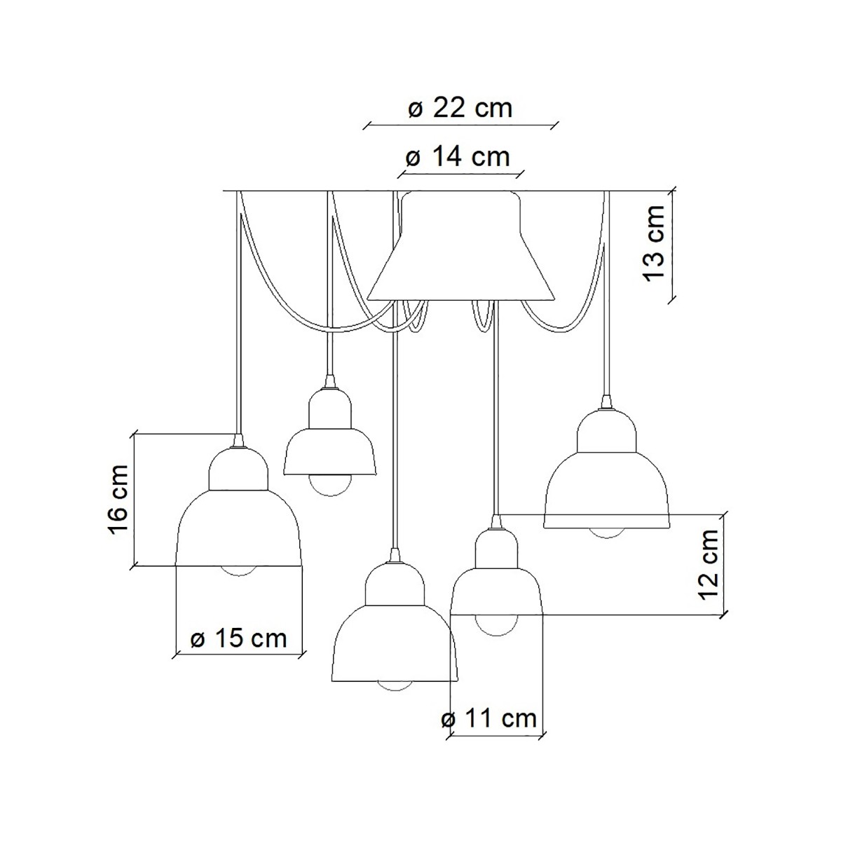 - Attacco: 3 x LED E27, max 53 W + 2 x E14, max 28 W.