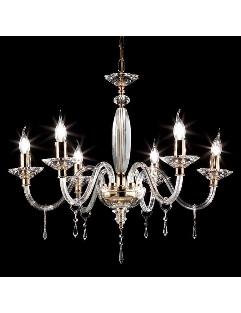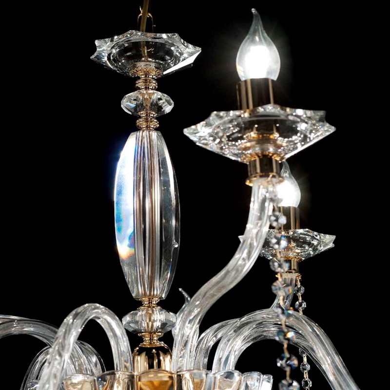 Sospensione in vetro e cristallo trasparente, finitura oro.