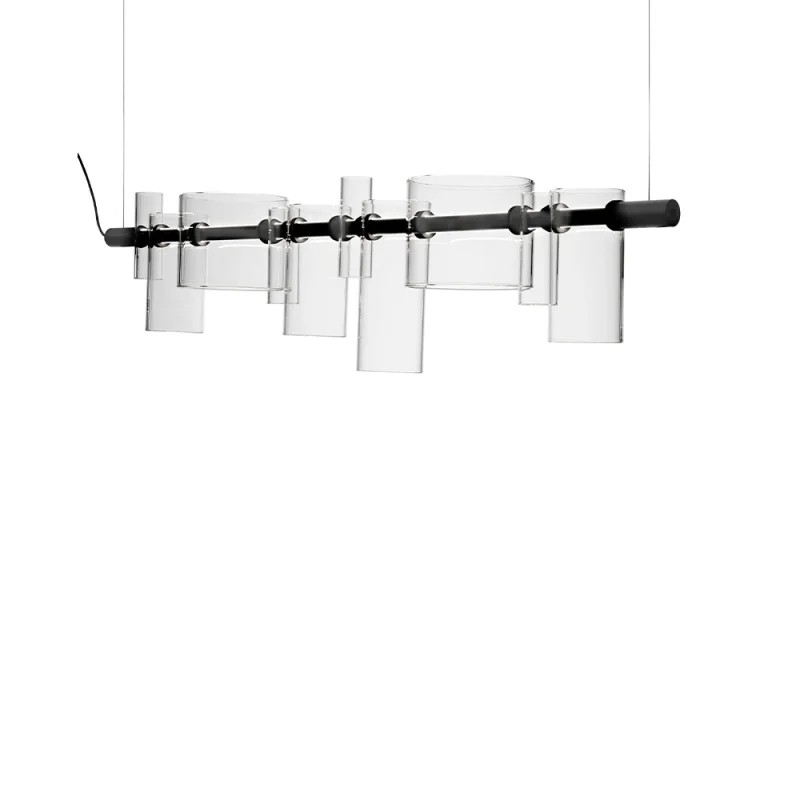 Dancing Glass incarna l’eleganza di una tecnica raffinata, dove la luce si trasforma in poesia. Nel modello a sospensione, presentato nelle nuove finiture in vetro e vetro fumé, la struttura orizzontale cela con maestria la sorgente LED, dando vita a layout luminosi inediti. Le forme irregolari giocano con ombre e riflessi, evocando una scultura in movimento. La nuova variante Dancing Glass Applique, fedele all’essenza giocosa dell’originale, si esprime in un design essenziale dove l’elemento cilindrico diventa unico. L’utilizzo del vetro regala giochi di luci e ombre, celebrando, come evoca il nome, la danza della luce.