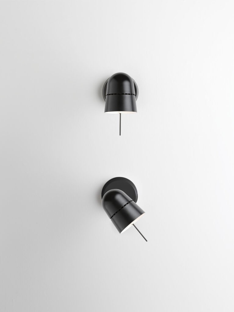 Nella declinazione spot a parete o soffitto, la lampada Counterbalance, priva del lungo braccio e del sistema di bilanciamento che ne contraddistingue le versioni d’origine a parete, conserva il caratteristico riflettore orientabile a calotta.
