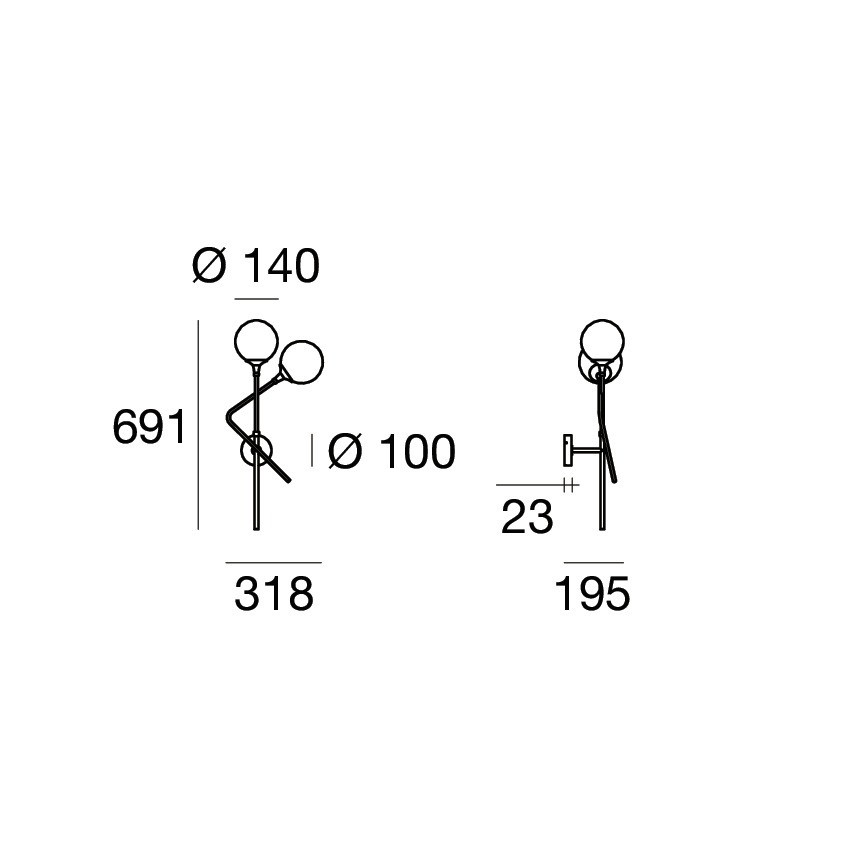 Galassia parete, disponibile a luce singola e a due luci orientate verso destra o sinistra, mantiene inalterato il fascino anni Cinquanta grazie all’abbinamento fra l’ottone con doratura galvanica della struttura e le sfere in vetro soffiato triplex bianco. Una preziosa collezione che arricchisce lo spazio con un sofisticato tocco retrò.