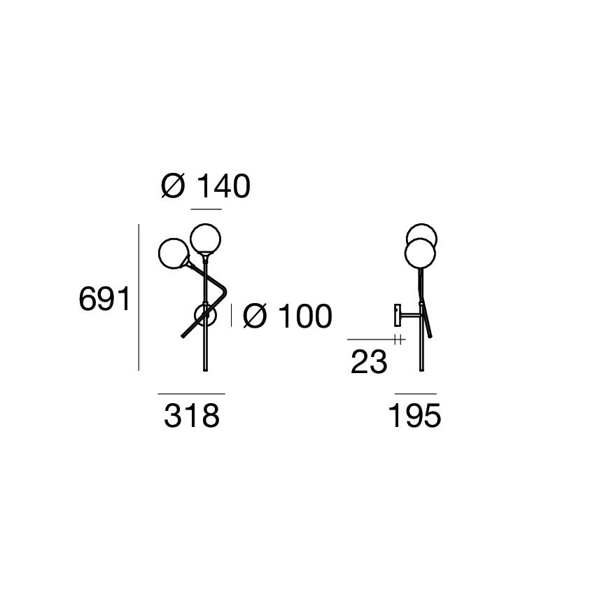 Galassia parete, disponibile a luce singola e a due luci orientate verso destra o sinistra, mantiene inalterato il fascino anni Cinquanta grazie all’abbinamento fra l’ottone con doratura galvanica della struttura e le sfere in vetro soffiato triplex bianco. Una preziosa collezione che arricchisce lo spazio con un sofisticato tocco retrò.