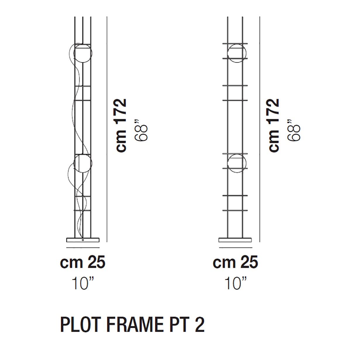 L’ispirazione dalla quale nasce la linea Plot Frame è la semplicità della sfera e il tentativo di rappresentarne il movimento. Una trama metallica all’interno della quale sfere di vetro luminescenti sono quasi libere di muoversi consentendo al fruitore di interagire con l’oggetto. Montatura nera opaca. Sorgente luminosa LED.