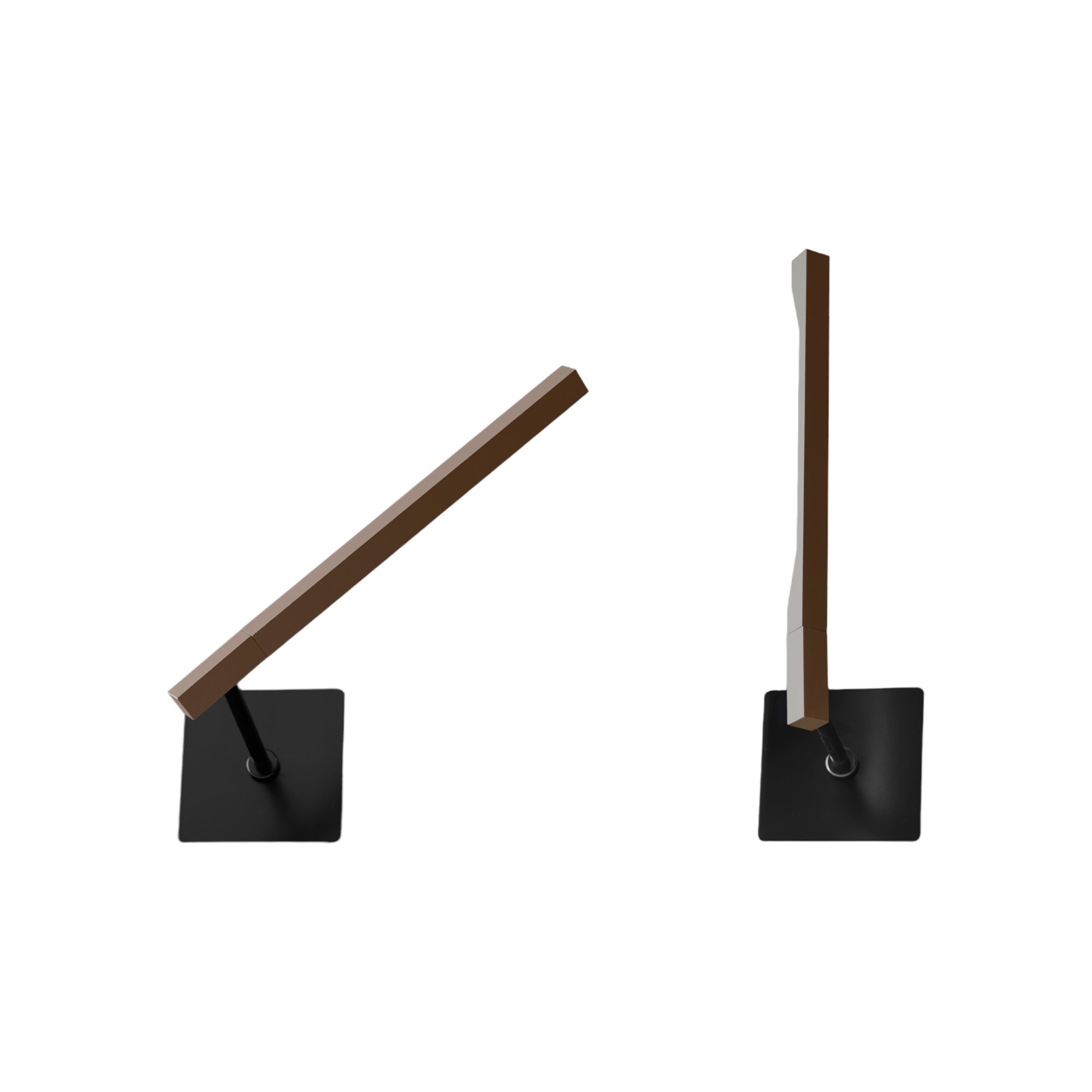 Ilo a parete è fissata al muro attraverso una placca quadrata, snodandosi grazie ad un perno che ne permette l’orientamento in tutte le direzioni, offrendo differenti interpretazioni sia estetiche che illuminotecniche, grazie anche al corpo illuminante ruotabile di 90°.