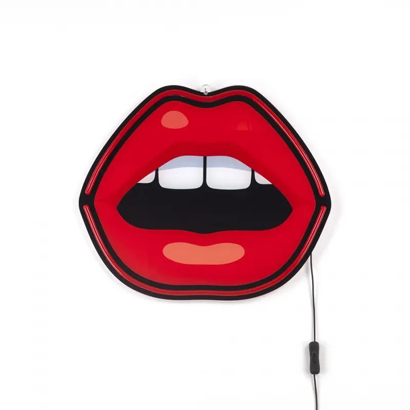 Lampada da parete a led caratterizzata da un design sensuale che raffigura una bocca aperta, simbolo della collezione Blow.