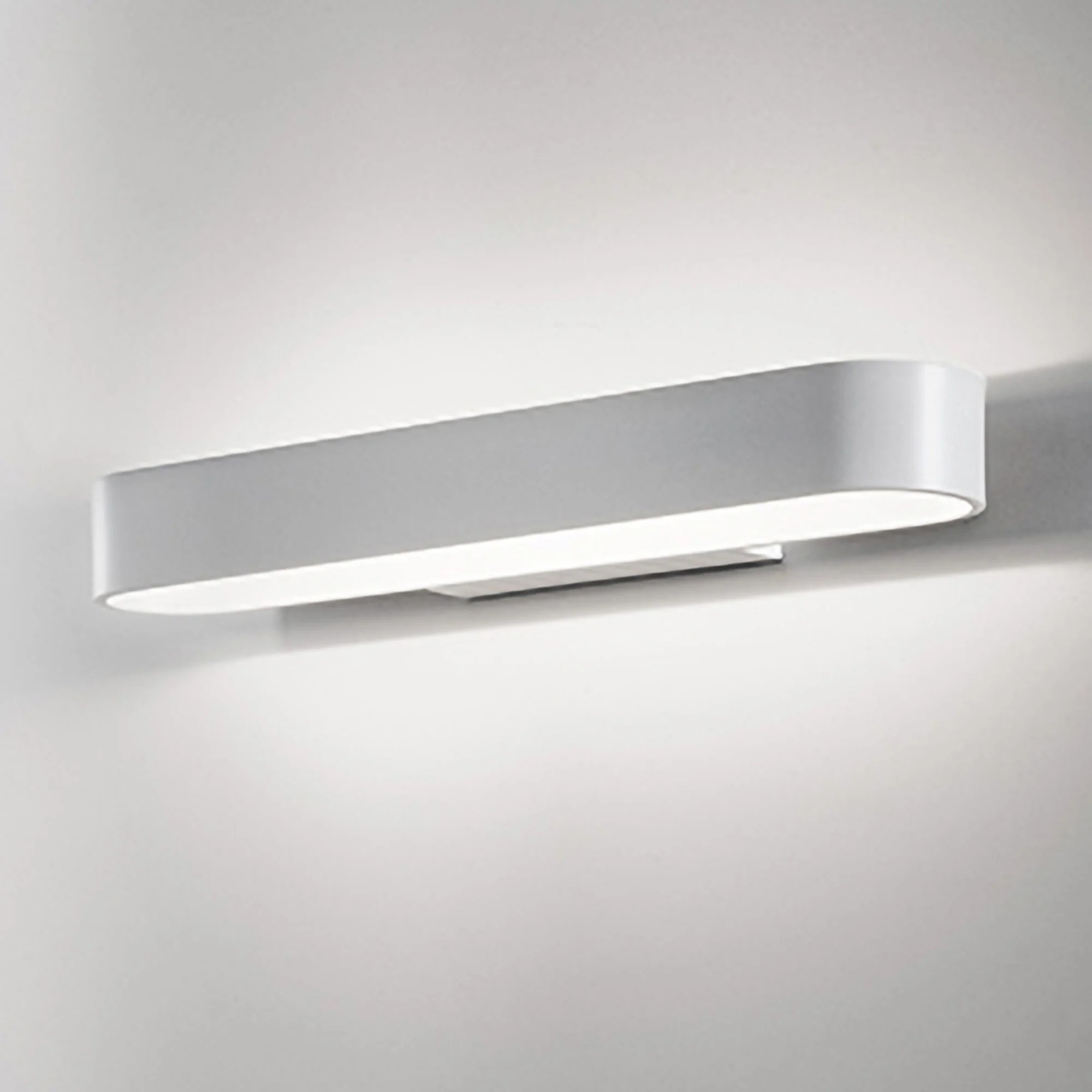 Lampade da parete in pressofusione di alluminio verniciato bianco opaco e diffusore in policarbonato satinato. Il prodotto è adatto esclusivamente all’uso INTERNO. Disponibili due dimensioni.