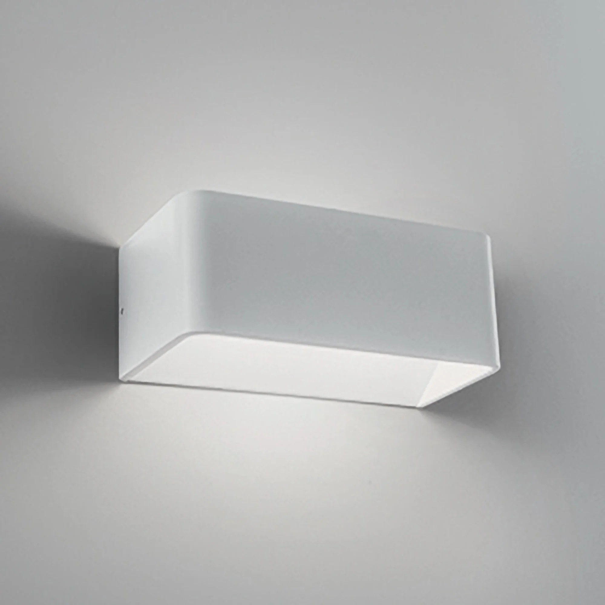 Lampada da parete in pressofusione di alluminio verniciato in vari colori e finiture, con diffusore in policarbonato trasparente.Per uso INTERNO.