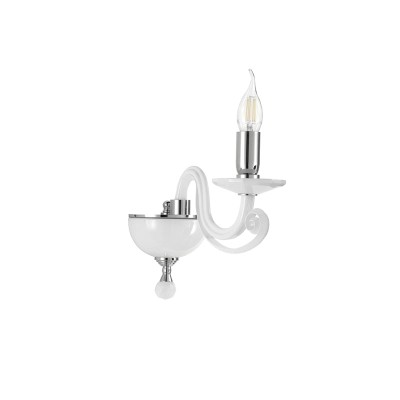 Lampada a parete con braccio singolo in vetro fatto a mano con cristallo ottico. Disponibile in 3 colori: Bianco, Cromo, Tortora.