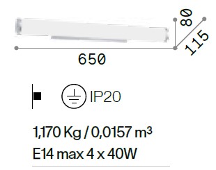 - Attacco: 4 x LED E14, max 40 W.