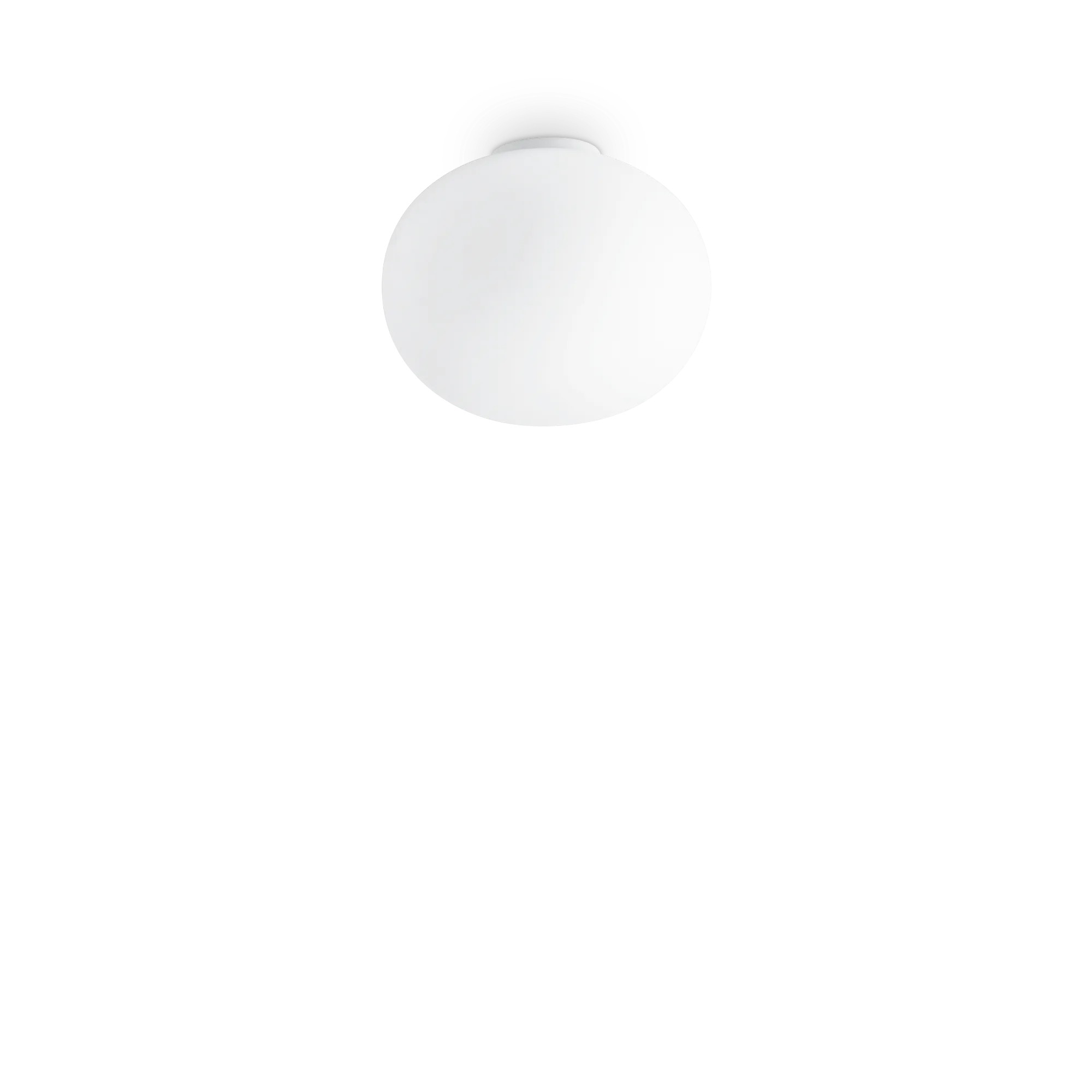 Base in metallo rifinito con vernice a polveri di colore bianco. Diffusore in vetro soffiato bianco acidato con fissaggio a vite.