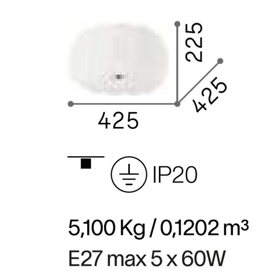 - Attacco: 5 x LED E27, max 60 W.
