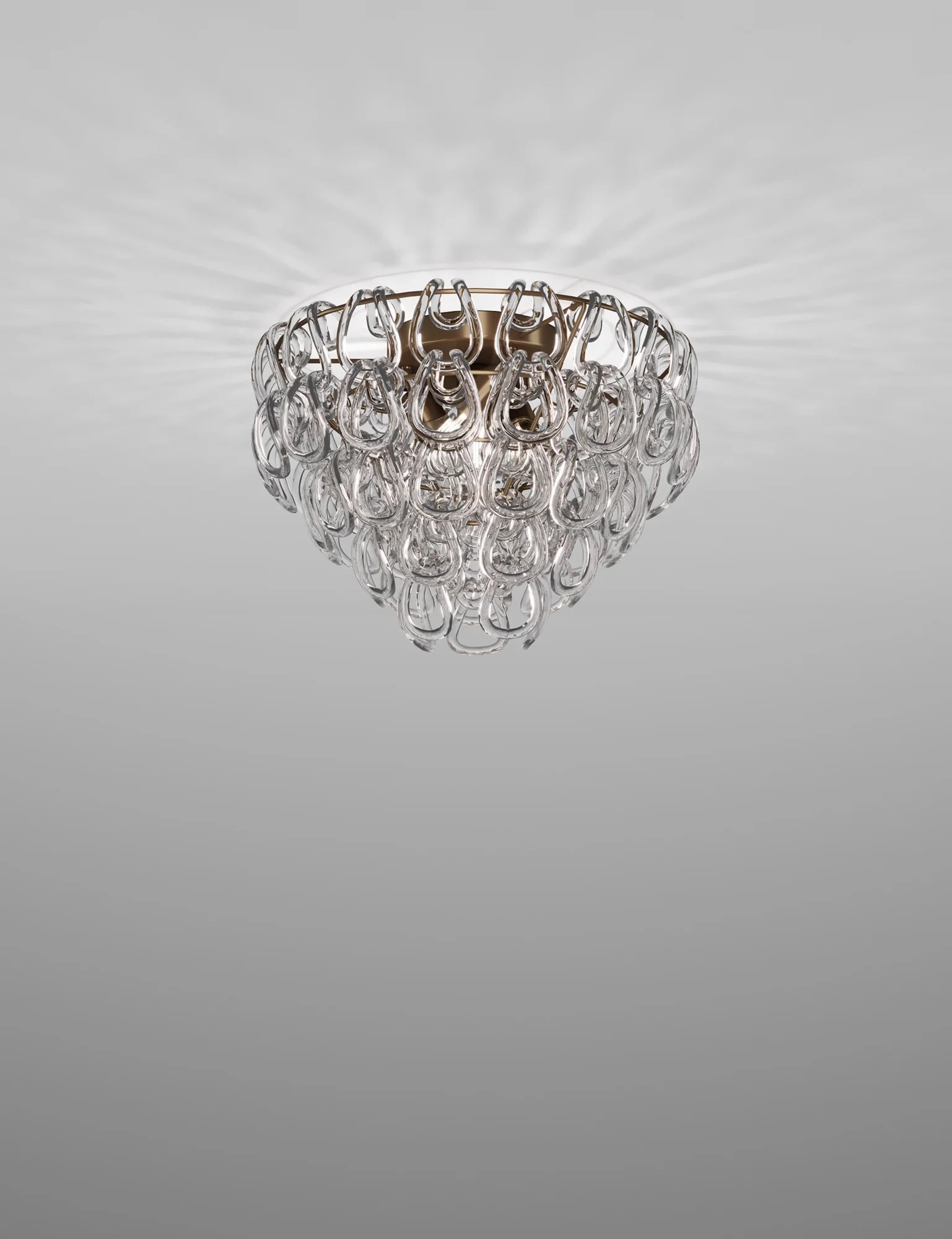 Un elemento, puro: il gancio di cristallo. È l’intuizione di un Maestro del design italiano come Angelo Mangiarotti che, nel 1967, dà origine al best seller del catalogo Vistosi, Giogali. Un intreccio iconico applicato alla versione che si preferisce.