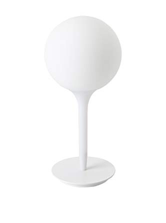 Il design del diffusore sferico viene esaltato dalla presenza di uno stelo luminoso, dalla linea morbida e affusolata, che costituisce il dolce passaggio dalla luce intensa del diffusore alla zona d’ombra della struttura della lampada. Base in zama; stelo in resina termoplastica; diffusore in vetro soffiato.