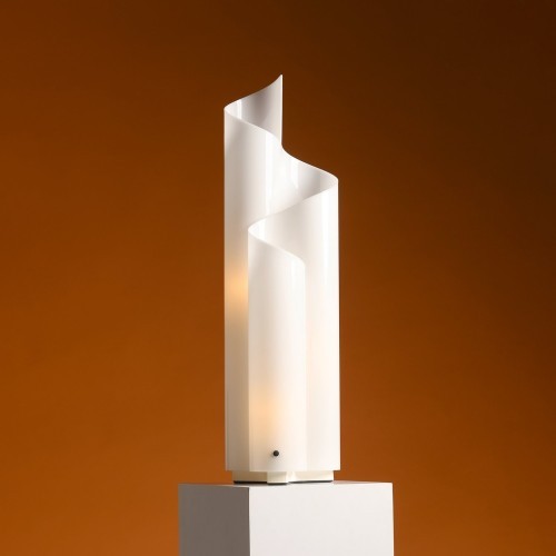 Le sue curve sinuose create modellando un foglio di metacrilato opalino diffondono delicatamente la luce. Unisce “semplicità e concetto”, che per Magistretti sono la base di un design che dura nel tempo.