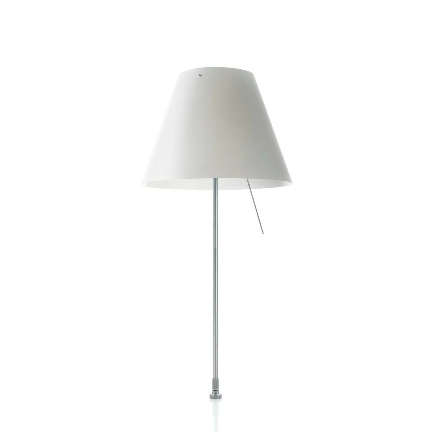 Una presenza tanto discreta quanto solida. Costanzina si inserisce con semplicità in ogni ambiente senza porre vincoli stilistici di accostamento. Il paralume di policarbonato appoggia alla struttura di alluminio su due soli punti d’equilibrio. Se urtato, oscilla senza cadere.