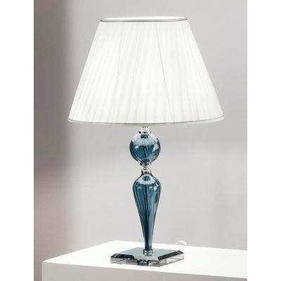 Lampada da tavolo grande in vetro fatto a mano. Finiture in metallo. Disponibile in due colori: Ottanio, Oro. Disponibile con paralume in tessuto.