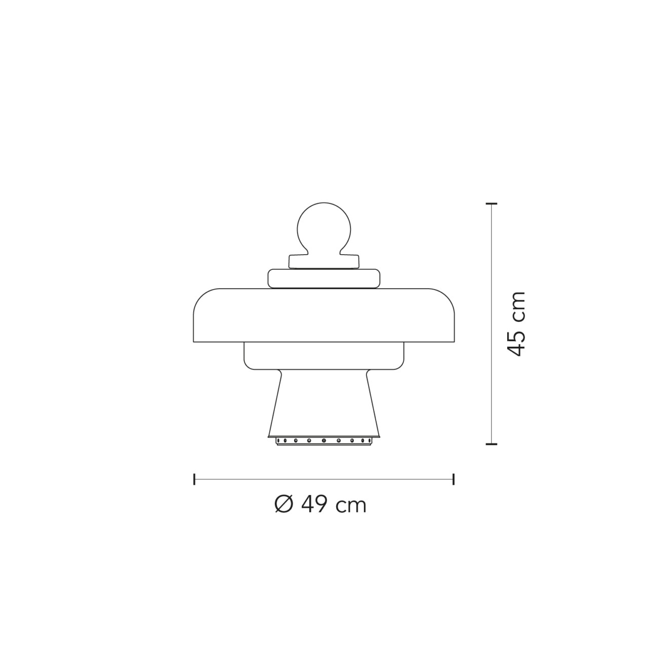 Lampada da tavolo o da terra a luce diffusa dimmerabile. Montatura in metallo verniciato. Diffusore in vetro soffiato satinato. Cavo di alimentazione, dimmer e spina neri. Alimentatore su spina con plug intercambiabili (europa - usa).