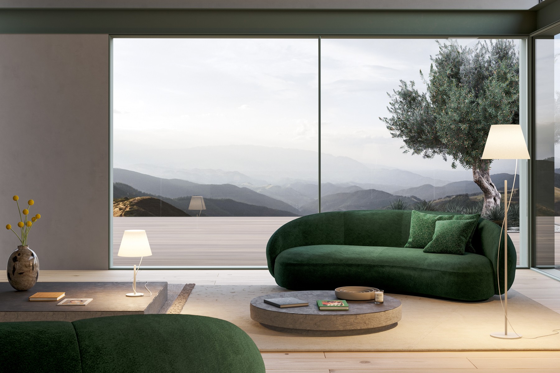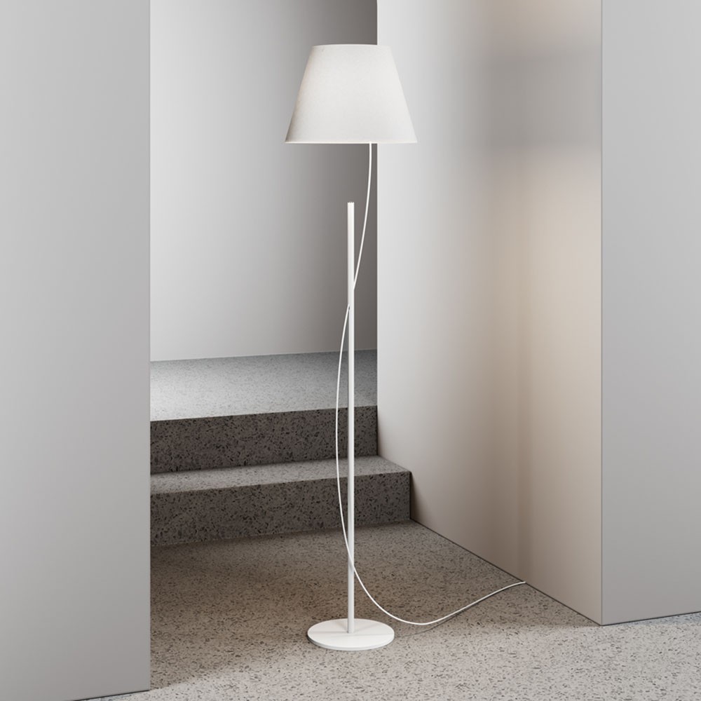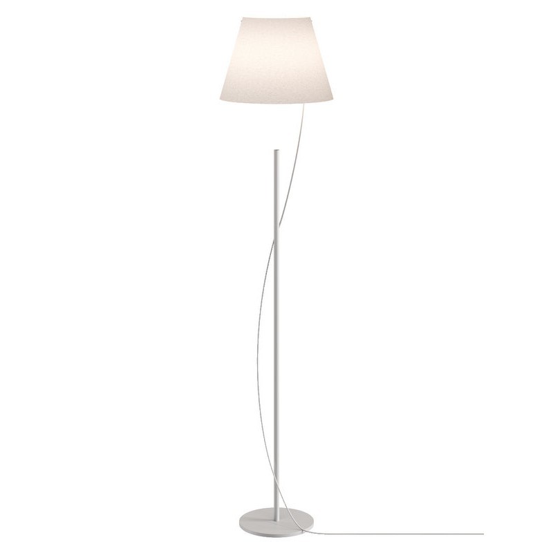Le lampade da tavolo e da terra Hover presentano un paralume che sembra separato dalla base, collegato perfettamente da un unico cavo che attraversa lo stelo per poi uscirne. Il risultato finale crea l’illusione che la sorgente luminosa sia quasi priva di peso e fluttui nell’aria, come un palloncino.