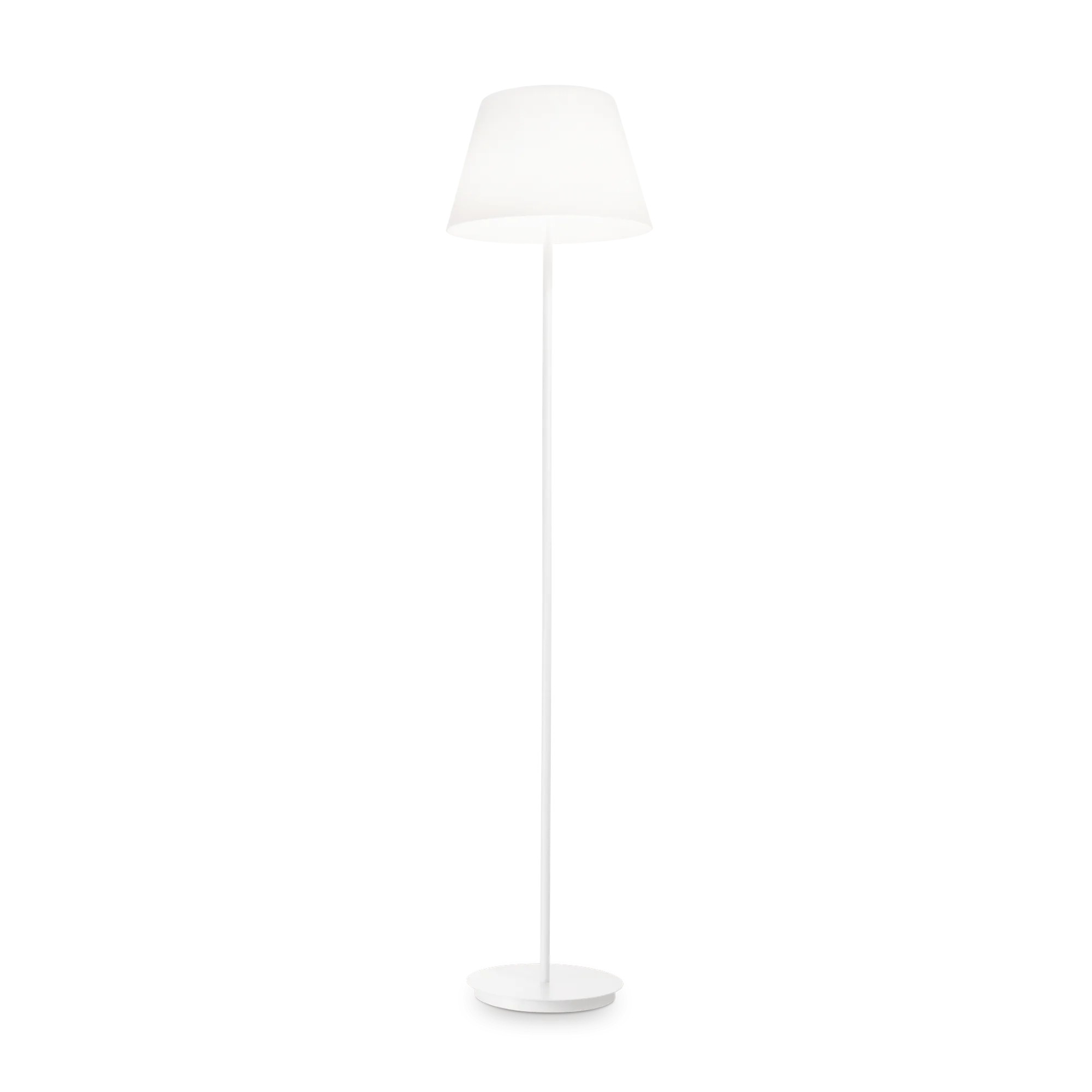 Base in metallo verniciato bianco opaco. Diffusore in vetro soffiato bianco incamiciato e acidato.