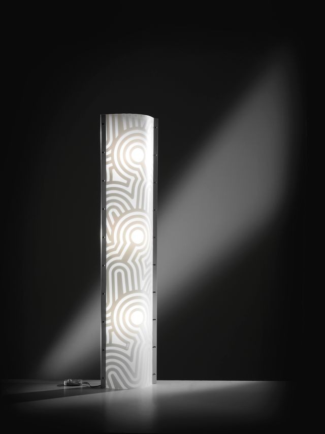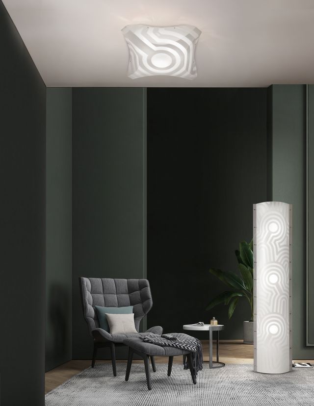 Come un sasso gettato nell’acqua, il decoro che caratterizza Venti Floor genera linee morbide e regolari: cerchi concentrici, sempre più grandi, in corrispondenza delle fonti luminose. Le colorazioni neutre tono su tono di questa piantana, disponibile anche nelle versioni da tavolo e da parete, la avvolgono guidando le vibrazioni della luce, che trasmette un’atmosfera calma e rilassata, delicata e regolare come la marea, capace di adattarsi e arricchire ogni interior. Venti Floor è alta 160 cm ed è realizzata in Opalflex®, materiale innovativo che la rende leggera e facile da pulire.