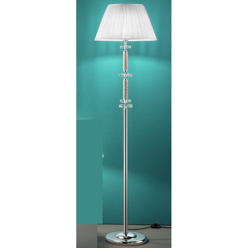 Lampada da terra realizzata in vetro fatto a mano, dettagli in cristallo ottico. Finiture in metallo. Disponibile nei colori: Cristallo, Oro. Disponibile con paralume in tessuto.