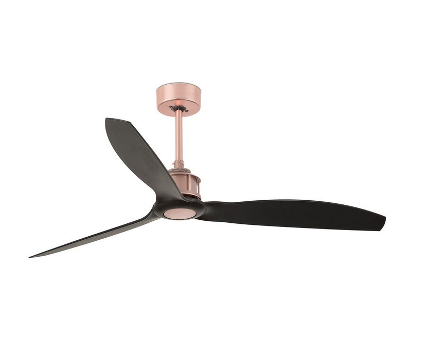 Just Fan M é l’essenza del ventilatore di stile industriale e molto attuale. Un telaio di metallo stilizzato che presenta un disegno innovatore e di grande effetto. Questo ventilatore da soffitto moderno é ideale per ventilare superfici da 13 a 17,6m². Questo ventilatore da soffitto con motore DC dispone di 6 velocitá regolabili. Le ventilatore Just Fan dispone di una funzione inversa.